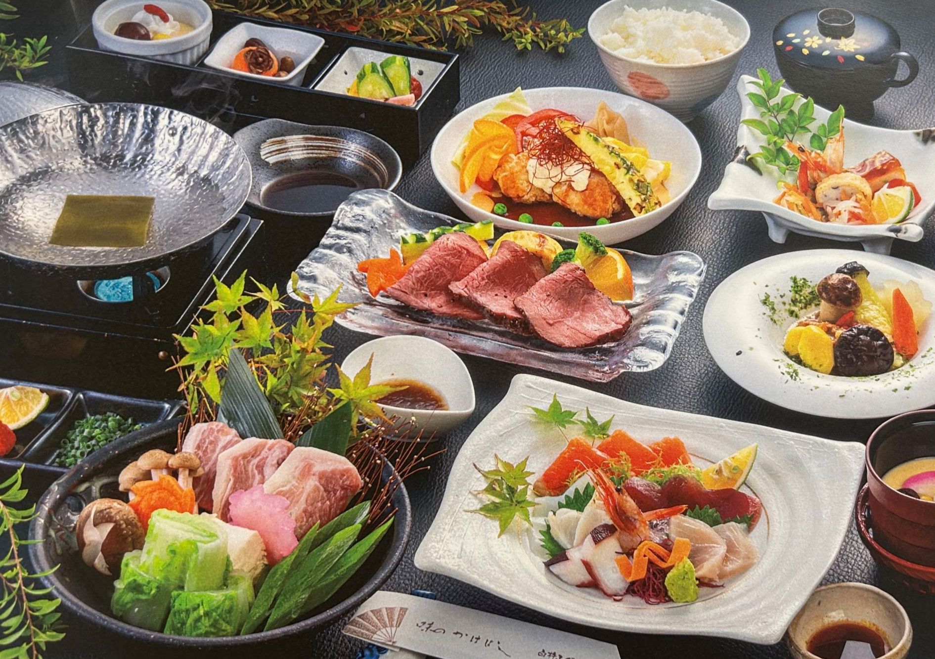 肉三味お刺身付き懐石(ローストビーフ・三元豚の鍋付き)